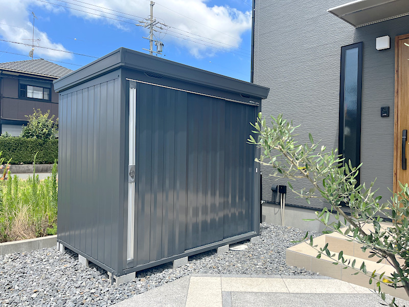 今、外構業界で空前のブームなのが、ずばり「ブラック・ダークカラーの物置」!