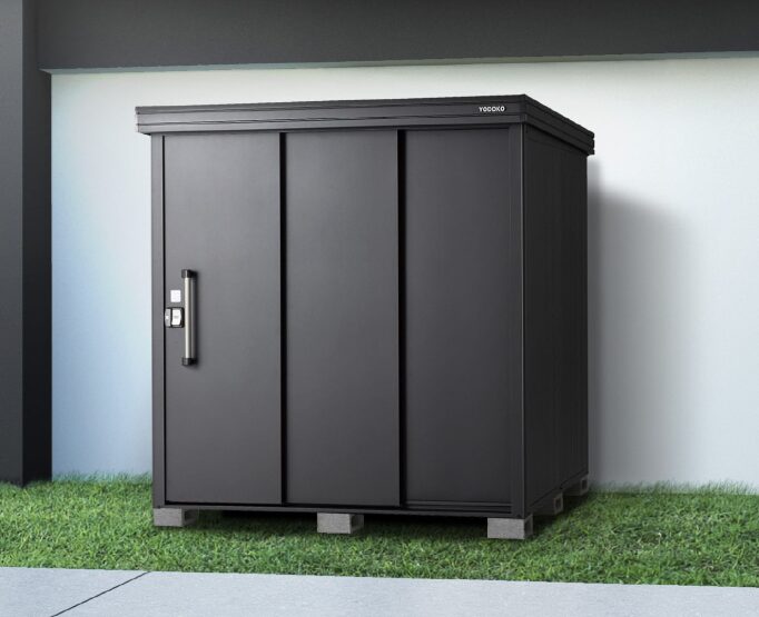 ヨド物置の小型ライン「エスモ」のブラックは、よりソリッドでモダンな印象。