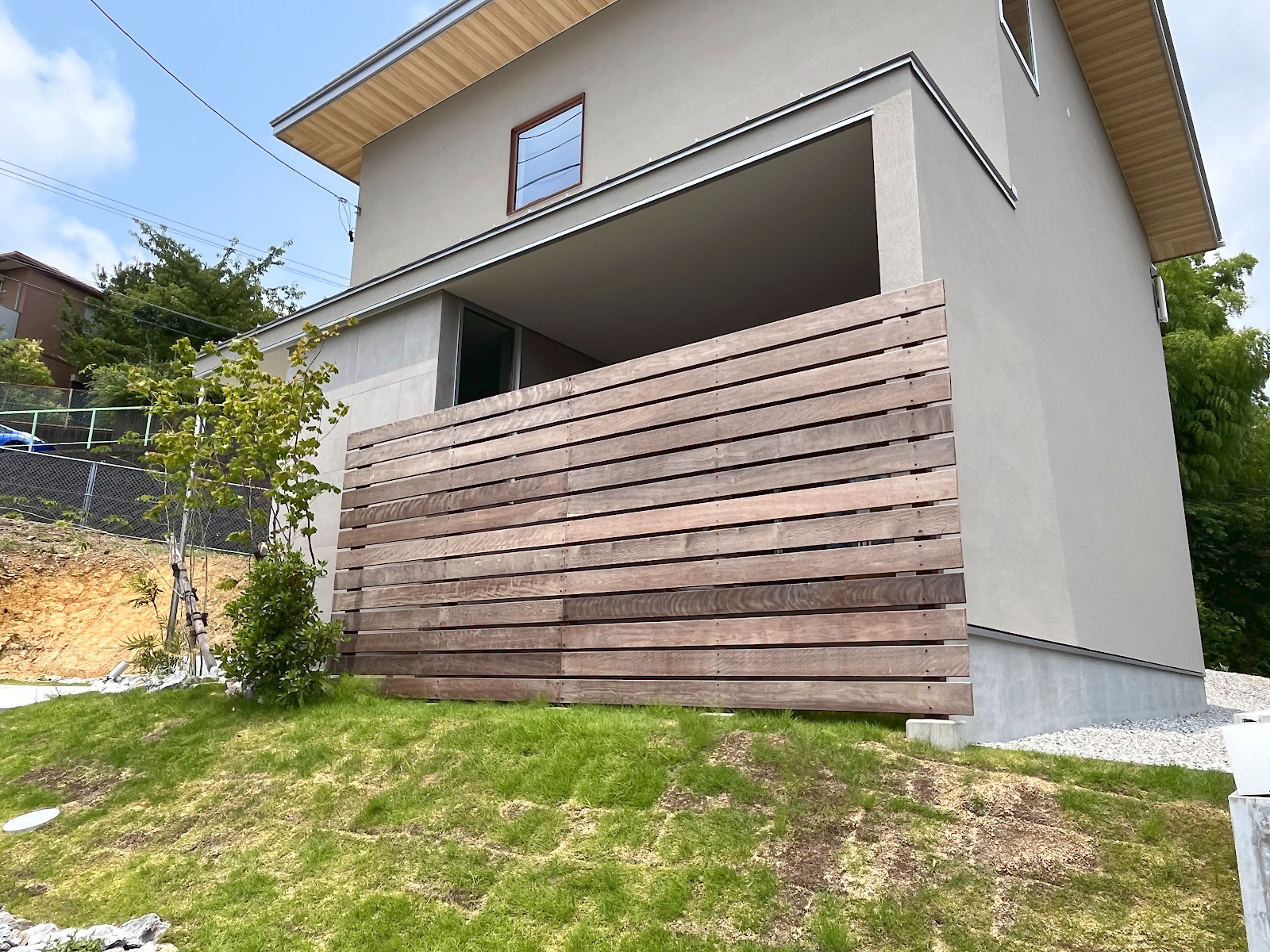 ハードウッド【イタウバ】で造作した目隠しフェンスで、