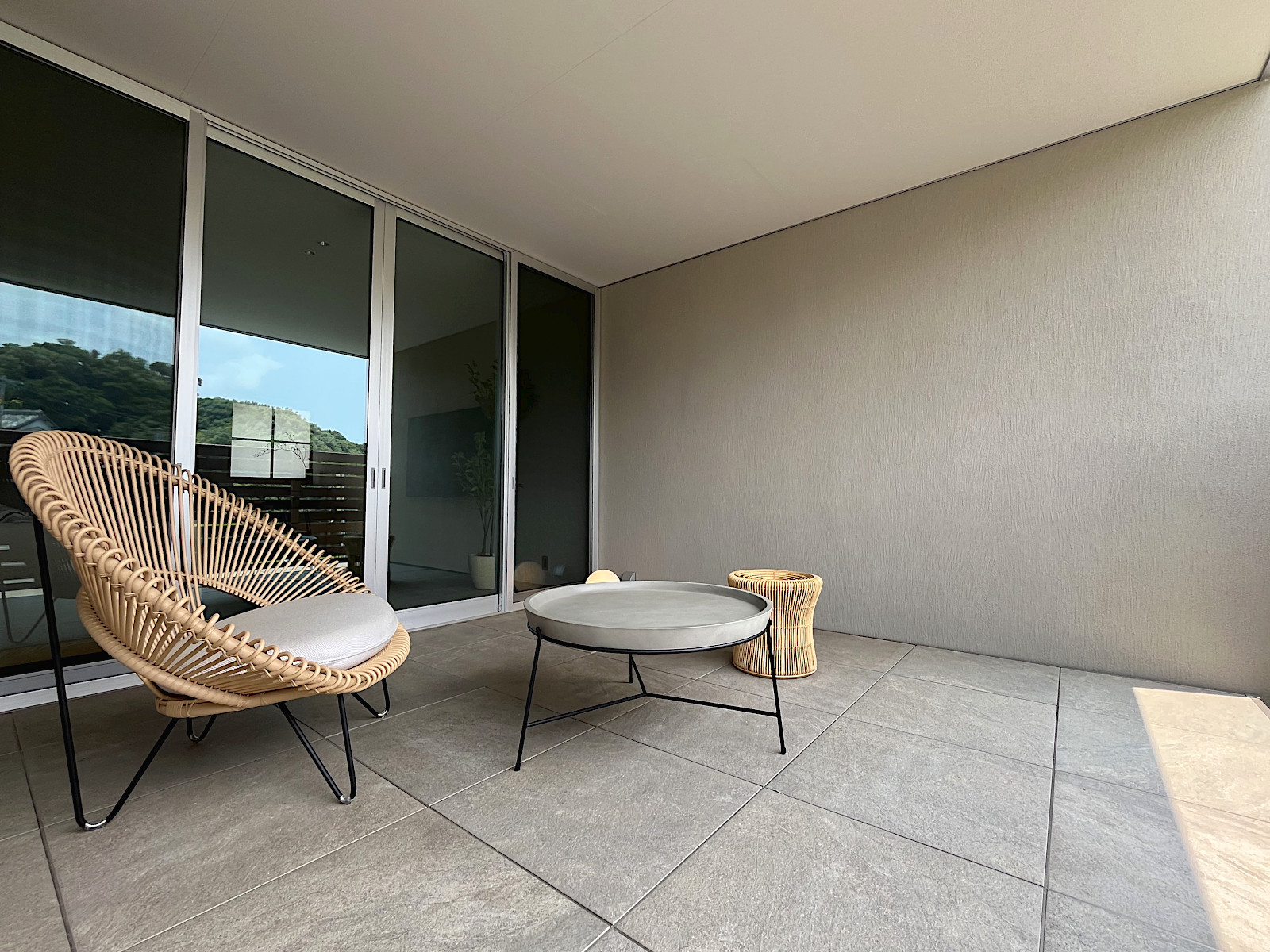道路沿いに建つおうちにもジャパンディなプライベートテラスを。