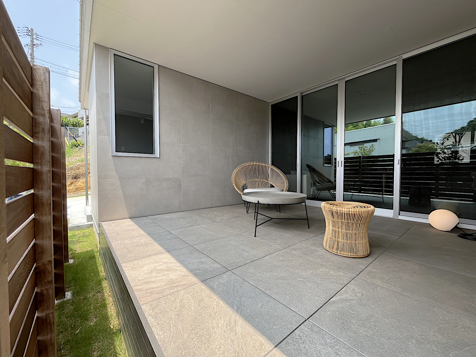 ウッドデッキの施工性とタイルテラスの高級感を良いところ取りした