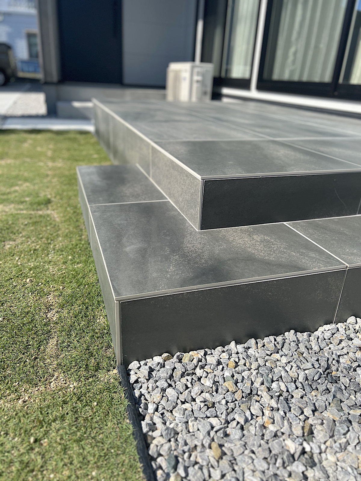 浮き階段とタイルデッキが彩るジャパンディスタイル